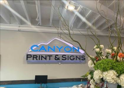 - Sign Shop: From vinyl decals to acrylic outdoor signs, Canyon Print & Signs creates durable and attractive signs to meet diverse client needs.