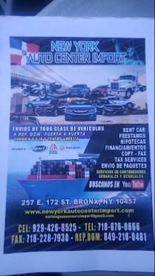 "summary": "New York Auto Center Imports and Exports is a reliable vehicle delivery service located in Bronx, NY, offering imports, exports, and on-site parking.",